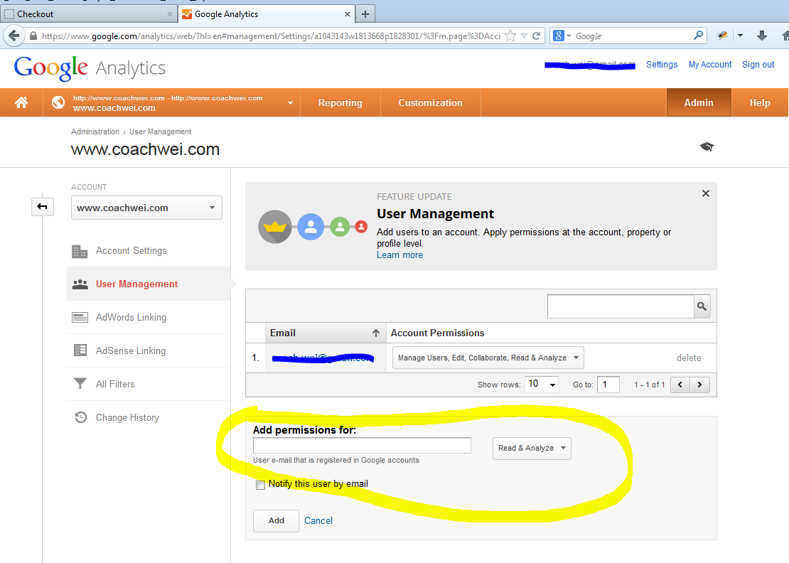 user access to google analytics account