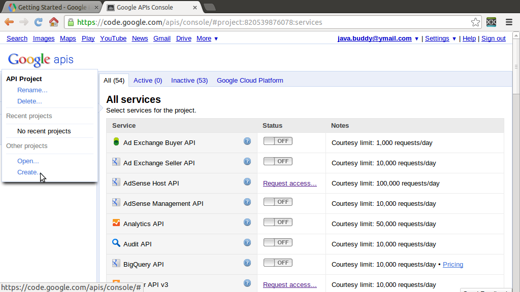 java buddy obtain api key for google maps api v3