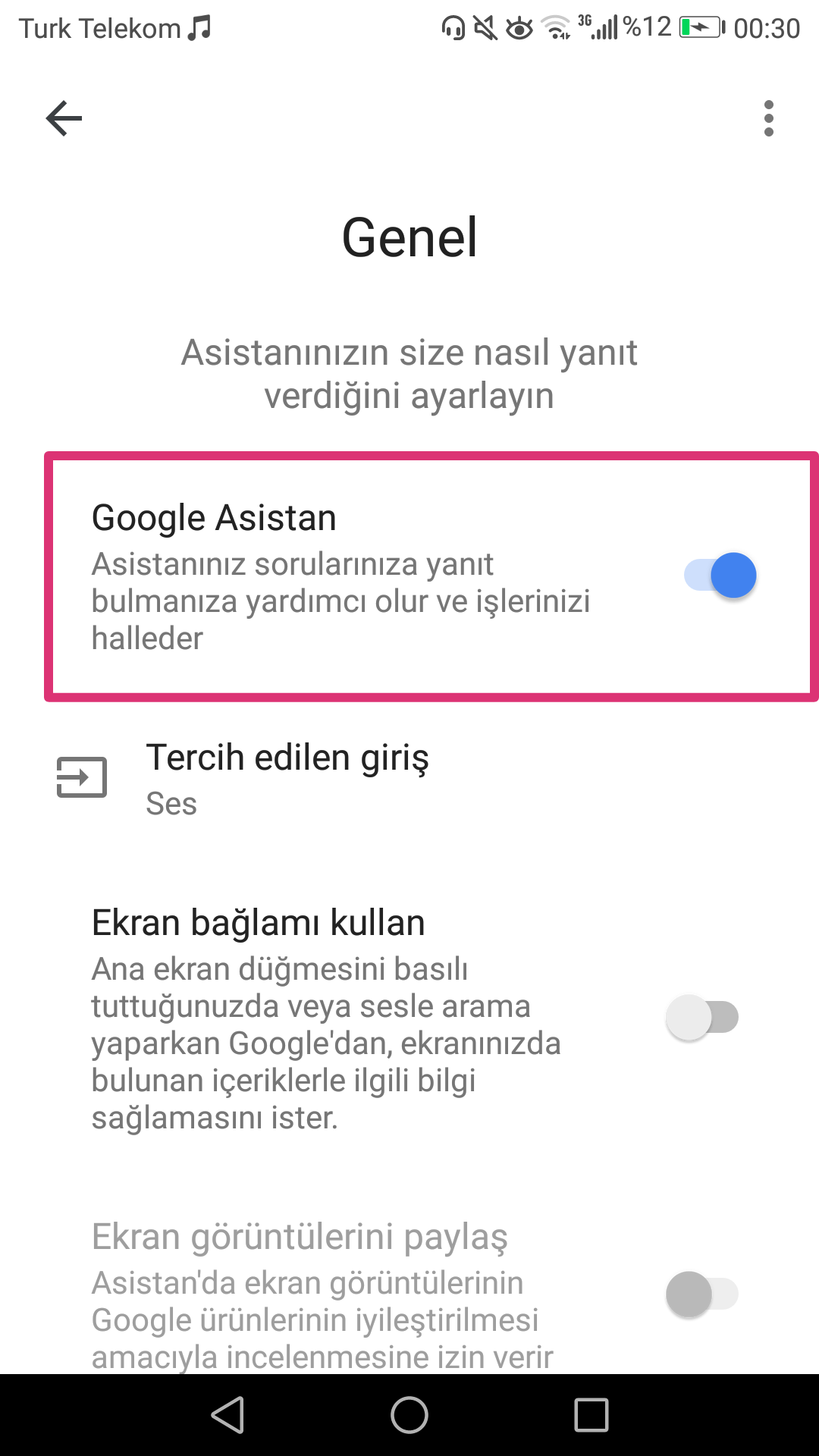 google asistan nasil acilir ozengen