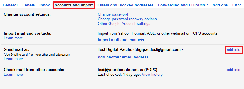 check and change a secondary gmail address