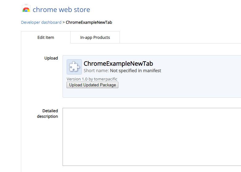 updating your chrome web store item