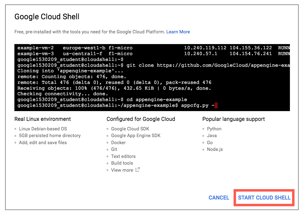 google cloud shell