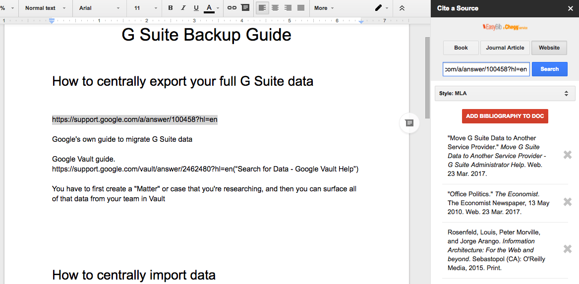 a bibliography in google docs