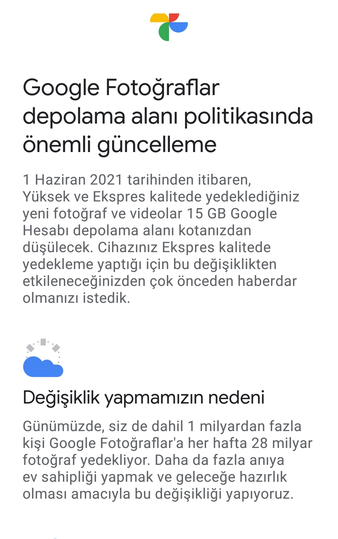 google fotograflar depolama alani