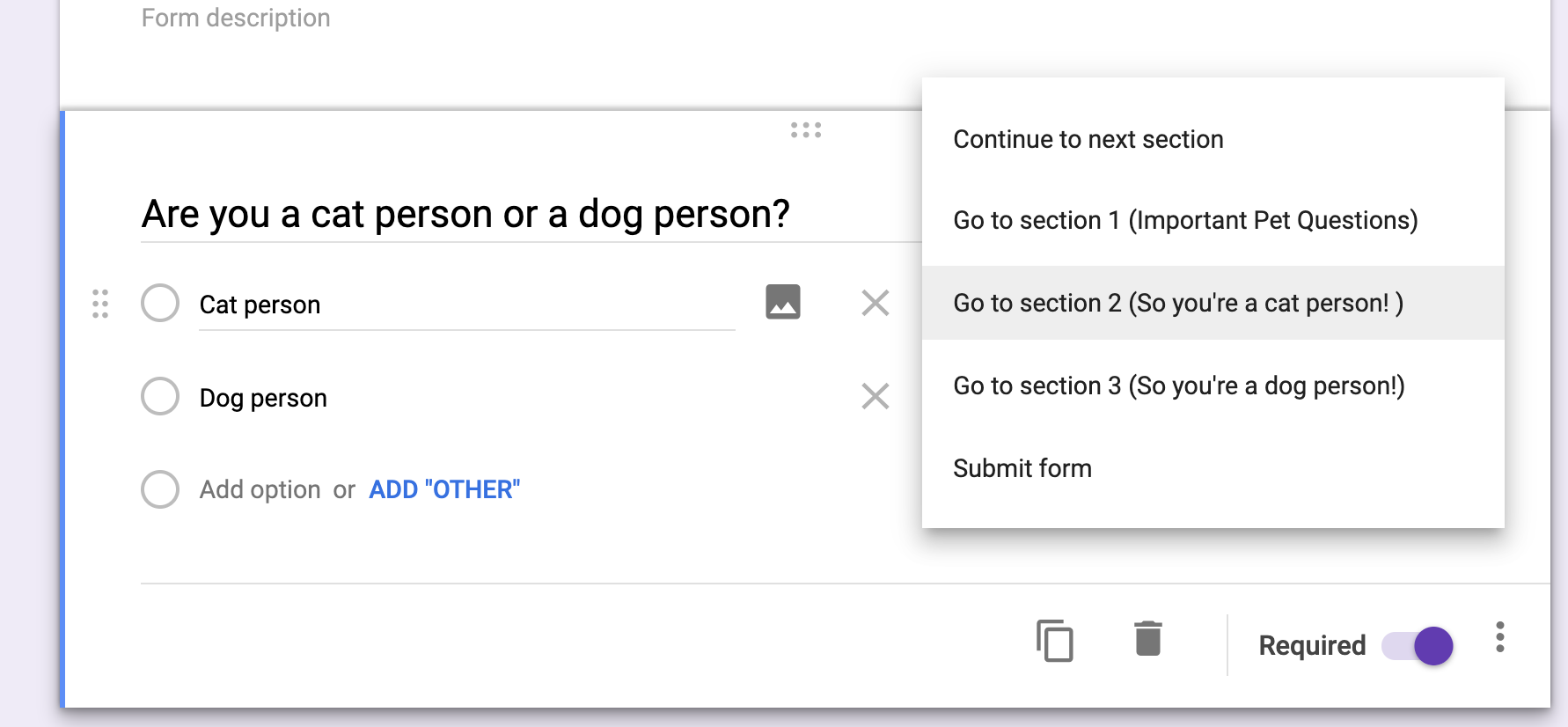 form sections and logic in google forms
