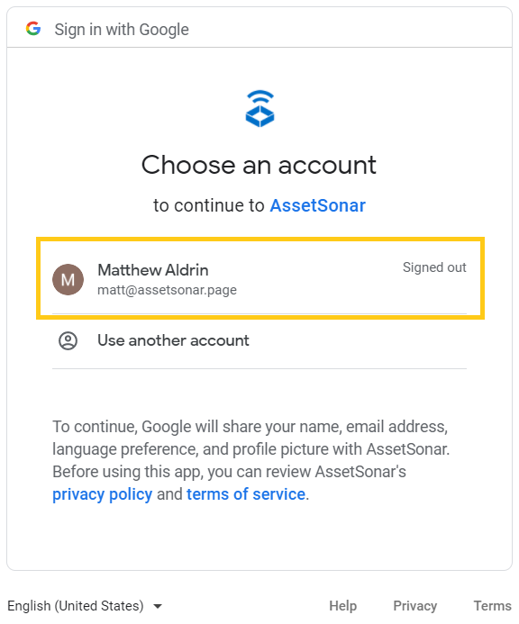 google account information for