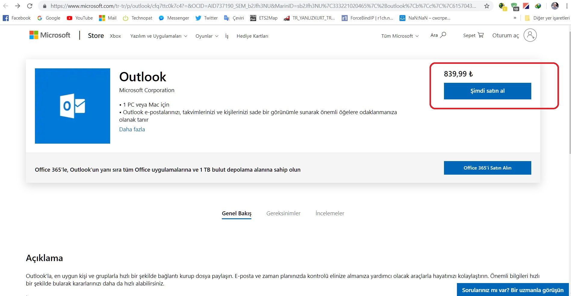 outlook u masaustune indirme