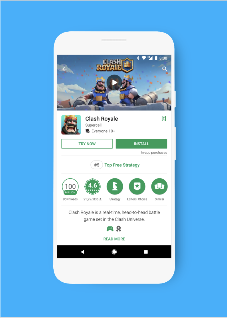 the play store gets a try now button