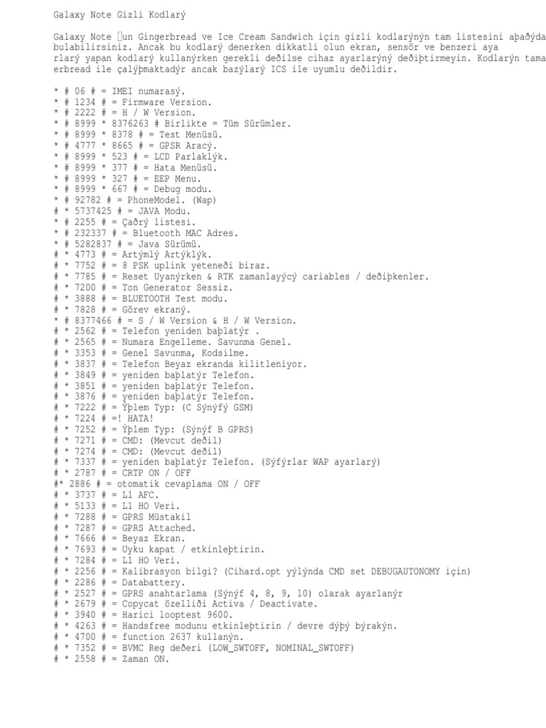 galaxy note gizli kodlari