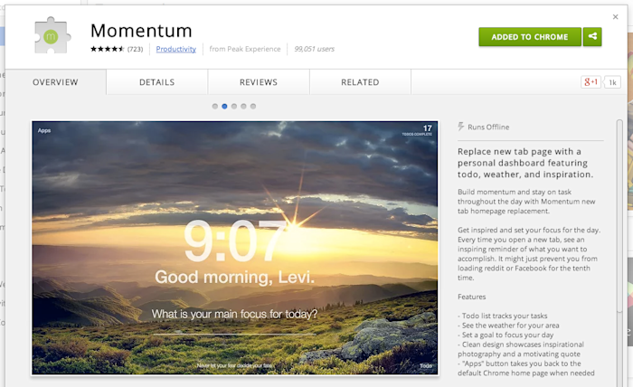 momentum best google chrome extension