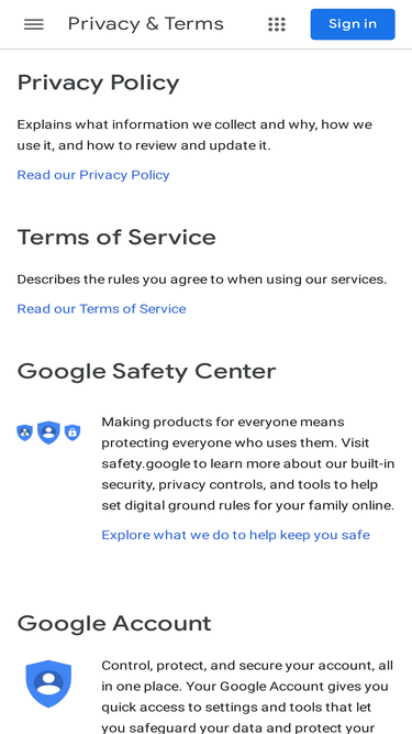 privacy policy privacy terms google