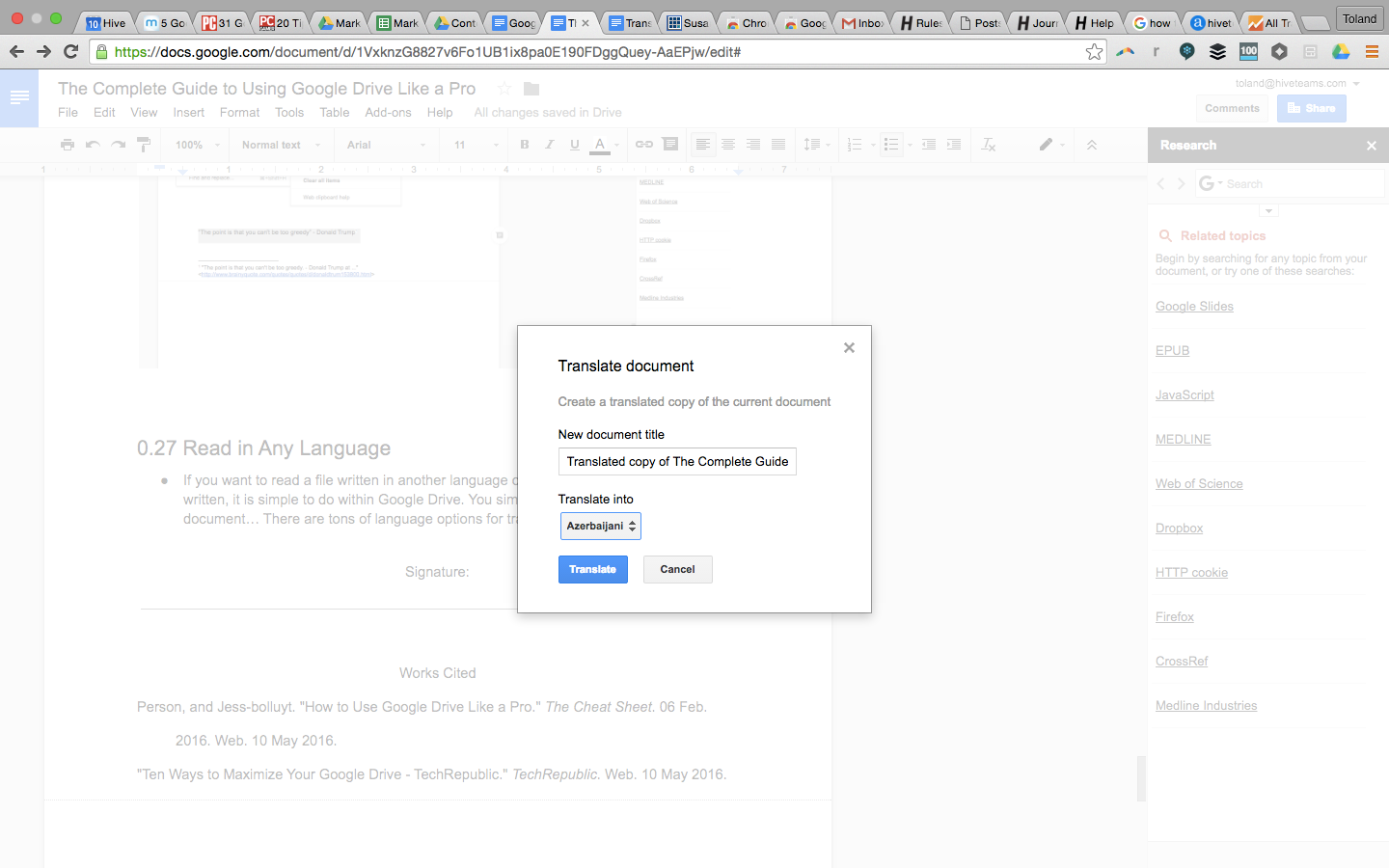 to translate a google drive document