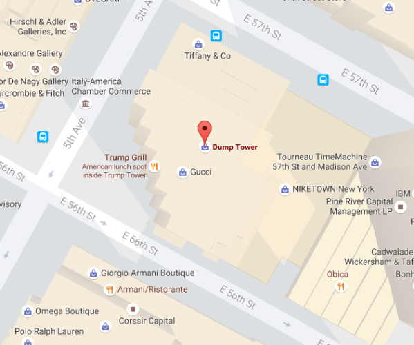 google maps shows trump tower as dump