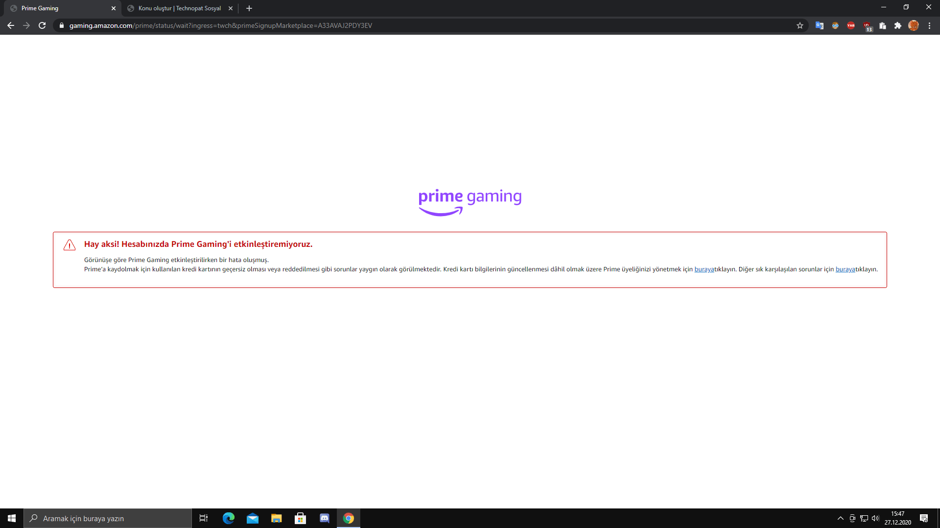 twitch prime ininal ile abone olurken